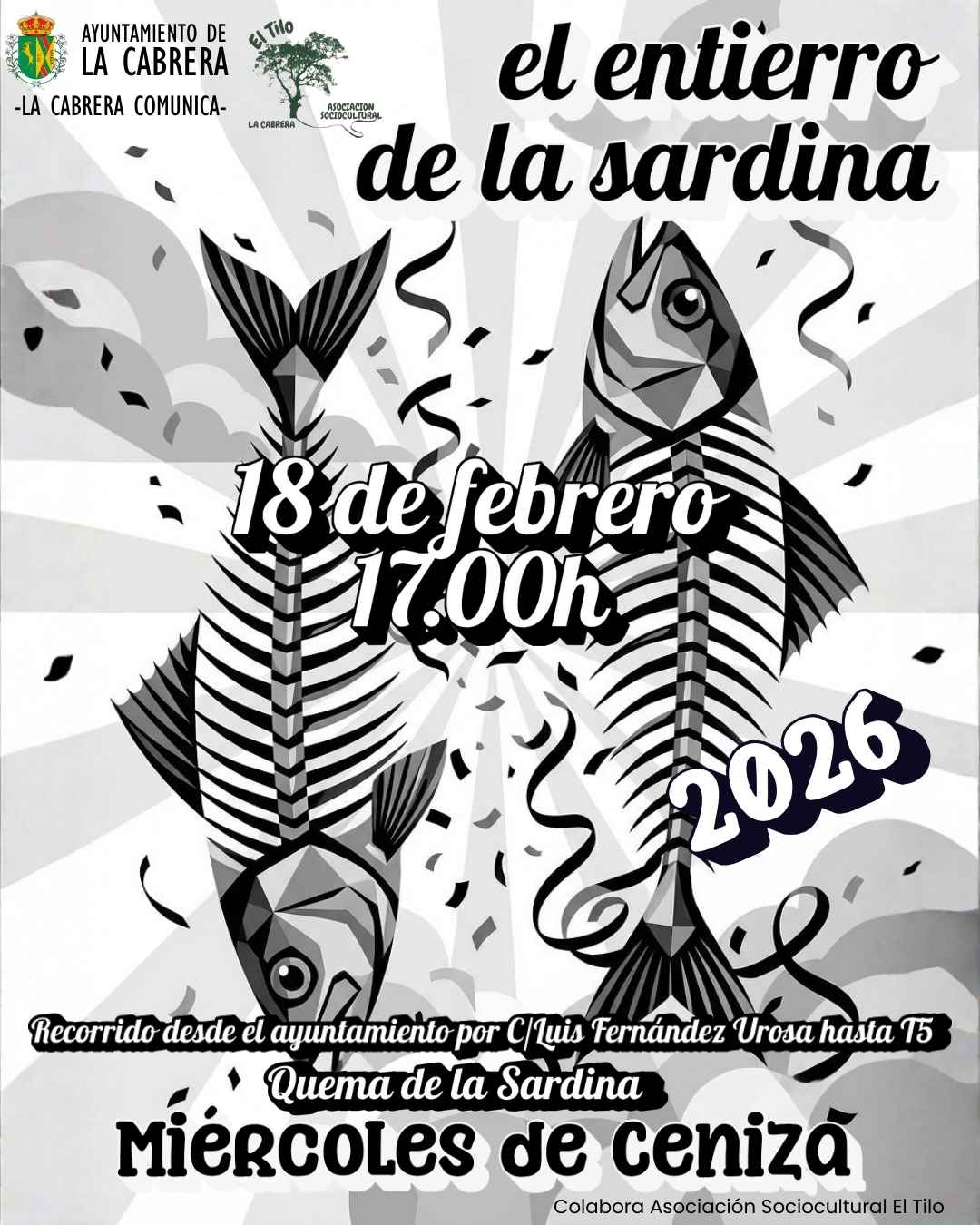 Te invitamos a participar en el Entierro de la Sardina 2026. Nos vestimos de viudos y viudas de riguroso negro, sacamos la lágrima (o la risa) y acompañamos en cortejo fúnebre a nuestra sardina en su último paseo.