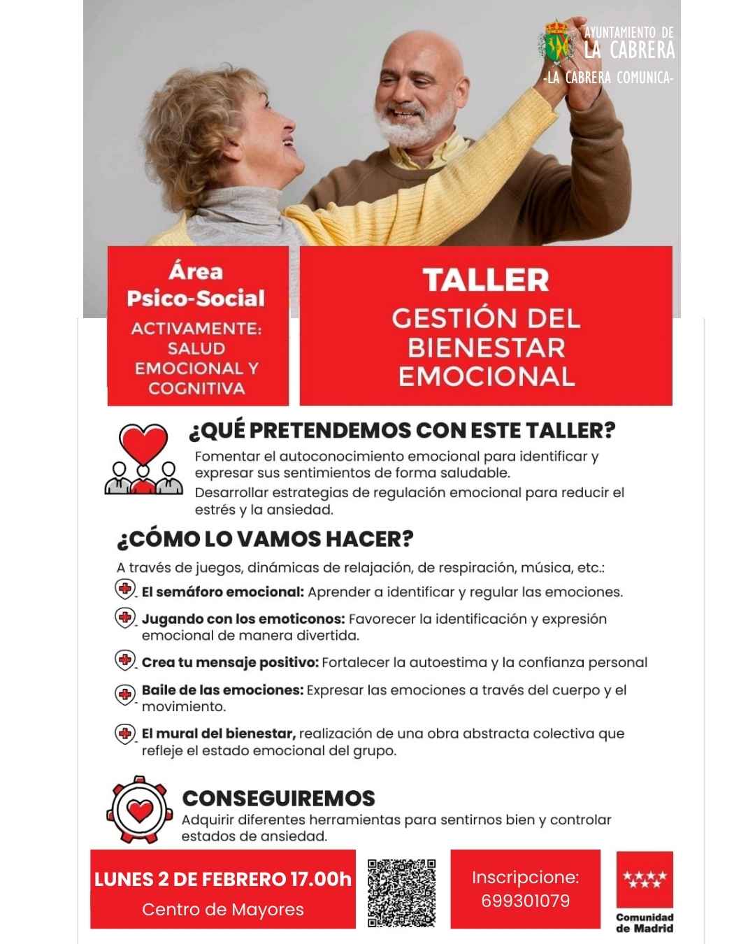Gracias a la Comunidad de Madrid, los mayores de nuestro municipio podrán realizar los siguientes talleres especialmente diseñados para ellos.